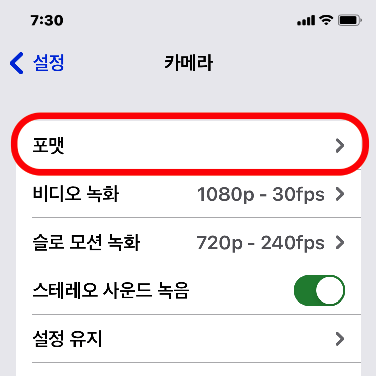 화상의 변환 등이 번거롭고, 화상 파일의 용량은 커도 문제가 없는 분은, 아이폰의 설정으로 JPEG 형식으로 촬영하는 것이 가능합니다.