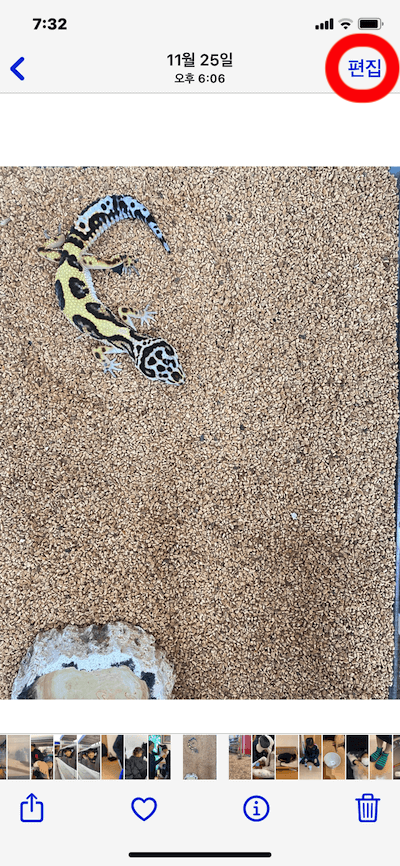 - 일시적으로 JPEG로 만들려는 이미지를 사진에서 선택하고 수정을 누릅니다.