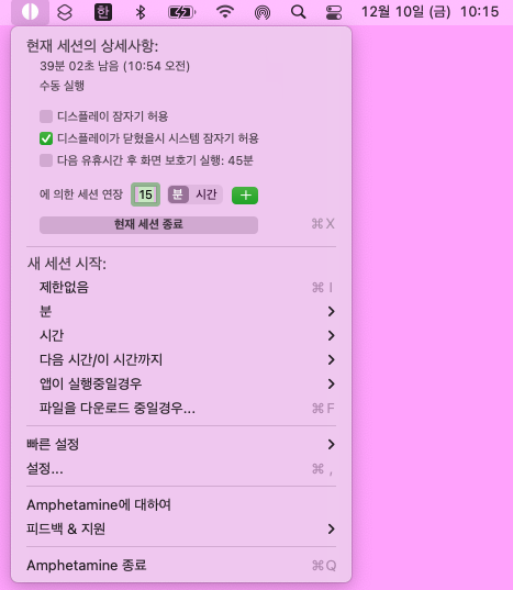 Amphetamine 앱을 사용하는 방법입니다. 이 앱은 무료로 Apple 공식 Mac App Store에서 배포되므로 보안 신뢰성이 높습니다.