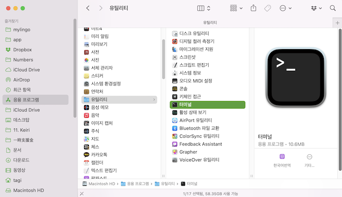 1. 터미널 커맨드 라인을 사용하는 방법 (m1 맥 카탈리나 기준)