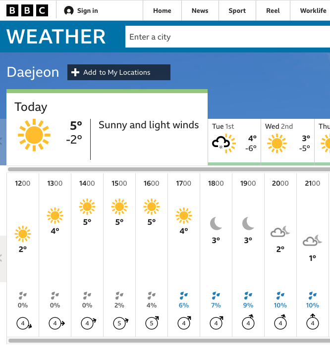 아큐웨더 대전 날씨 링크 https://www.accuweather.com/en/kr/daejeon/223352/weather-forecast/223352