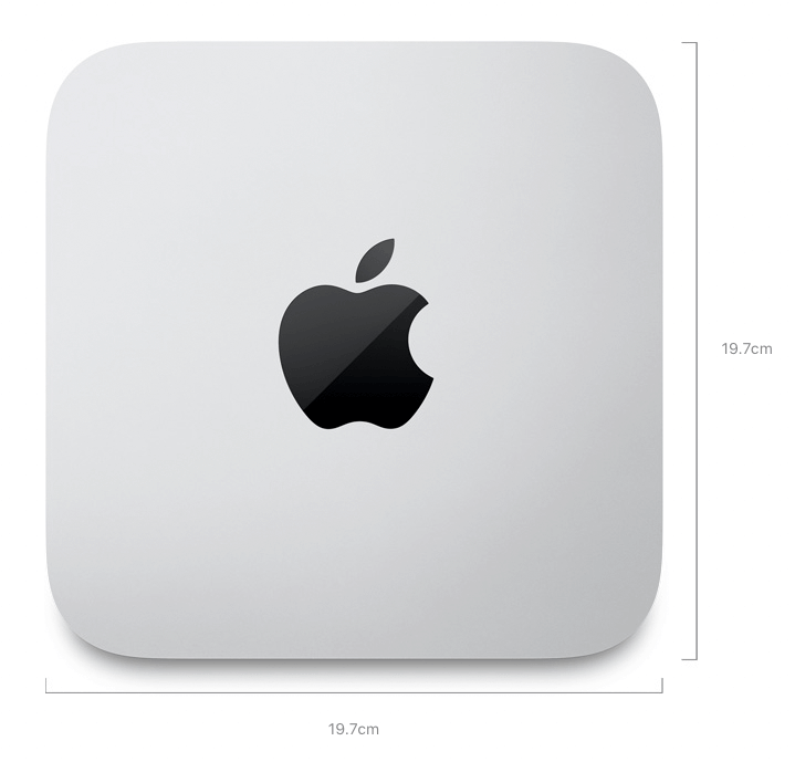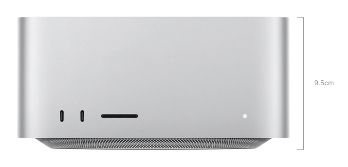 맥 스튜디오의 가로세로 크기는 맥 미니와 동일합니다. 높이의 경우 미니가 3.6센치이데 반해 맥 스튜디오는 9.5센치입니다.