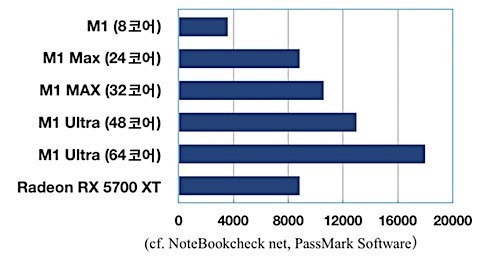 상위 기종의48 코어 GPU는 그약 2배의 성능입니다.