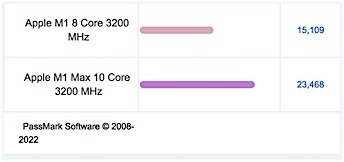 M1 Max는, 2.5배·2.2배라고의 표기입니다.