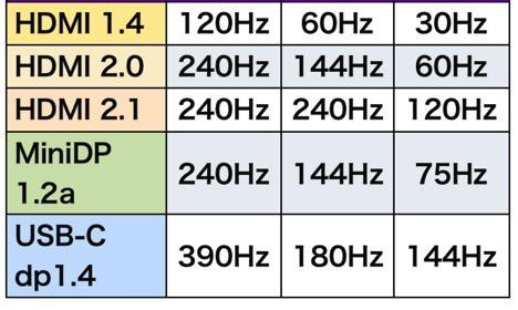 USB-C는6K/60Hz입니다. display port 1.4 호환이기 때문에, 4K 에서144Hz 까지 표현 할 수 있을 것입니다.