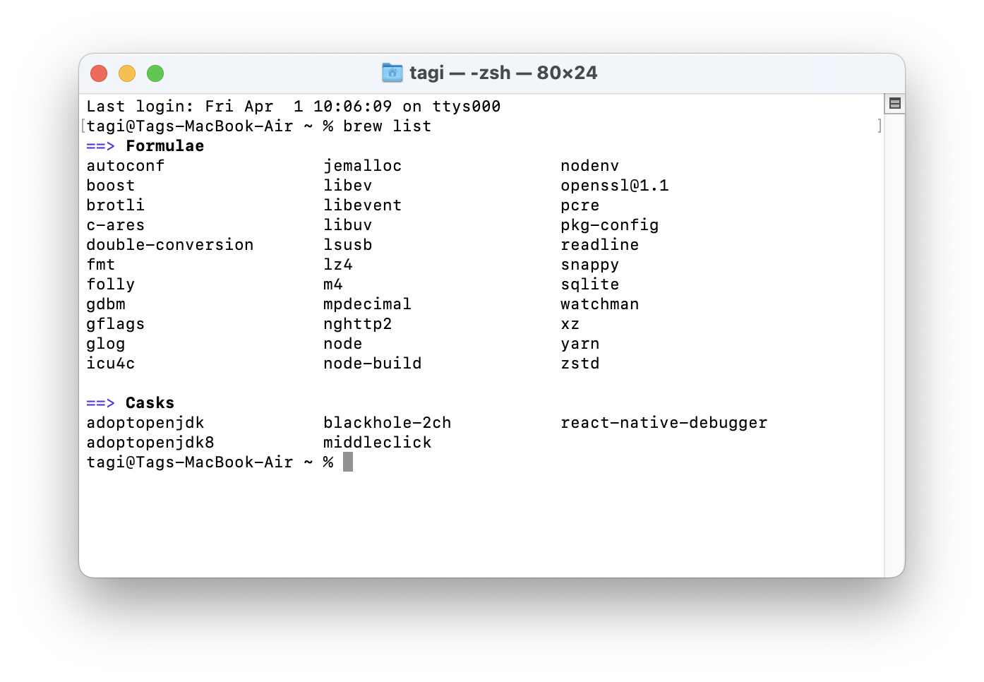 먼저 제거할 brew list 로 패키지를 찾습니다.