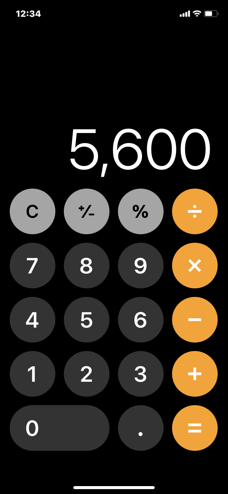 - 6,000의 30% 할인을 요청할 때 [6][00][0][×][30][%][-][=]를 입력합니다.