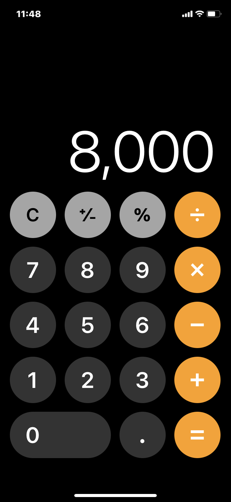이 백분율 키(%) 는 계산기에 따라, 백분율키만 누르면 바로 계산이 되는 계산기 (카시오 계열) 가 있습니다. 아이폰의 경우 마지막 [=] 키를 눌러야 합니다.