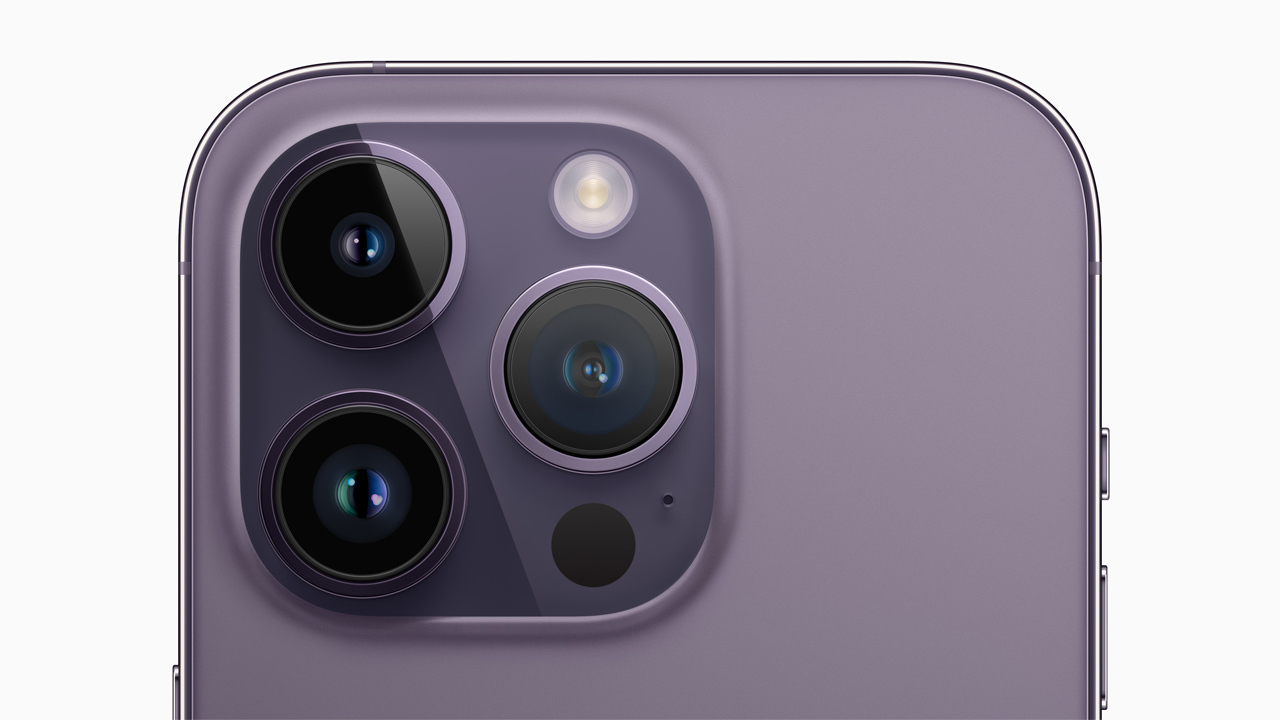 아이폰14가 광각과 초광각의 2개의 렌즈를 바꿀 수 있는 듀얼 카메라에 대해, 아이폰14 Pro는 줌 촬영에서도 화질이 열화되지 않는 망원 렌즈도 추가한 트리플 카메라를 탑재하고 있습니다.