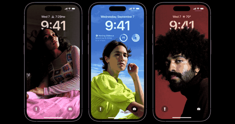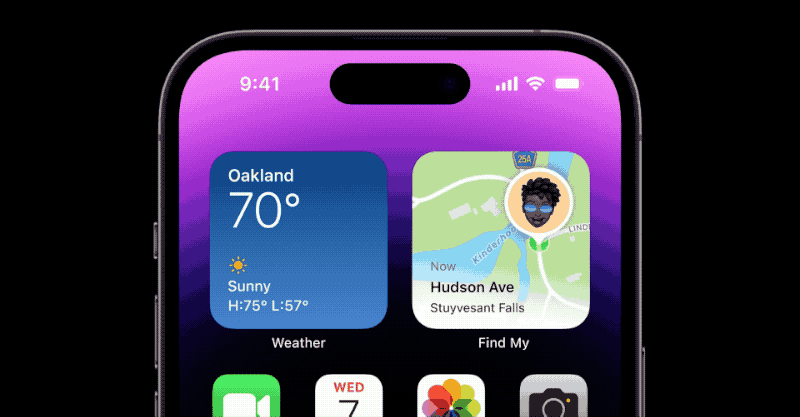 Dynamic Island(다이나믹 아일랜드)로 명명된 영역은 iOS 16과 연동하여 아이폰상황에 맞게 확대되어 통화 시간과 음악 제어판, 타이머, 지도의 경로 안내를 표시합니다. 필요하지 않을 때는 원래 크기로 자동으로 돌아갑니다.
