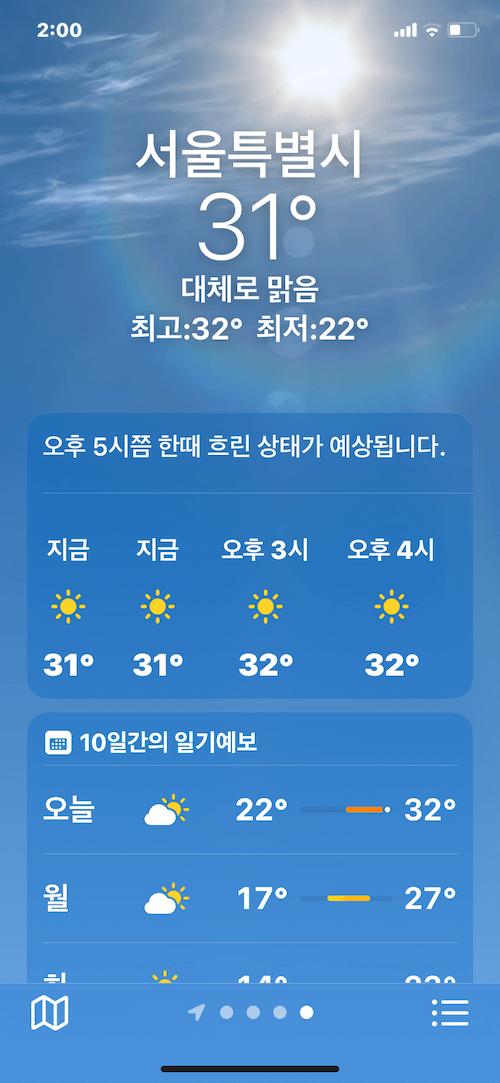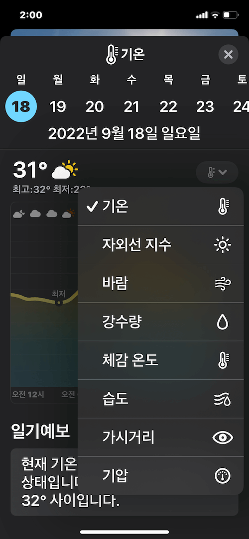 날씨 앱은 일별 상세 정보가 추가 . 기온, UV 지수, 바람, 강수량, 체감 온도, 습도, 시정, 기압의 그래프가 표시 가능하게 되었습니다. 이 정보는 잠금 화면 위젯으로도 사용할 수 있습니다.