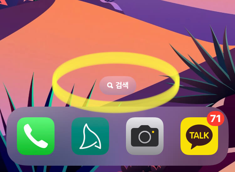 iOS 16 홈 화면에는 화면 하단에 "검색" 버튼이 추가됐습니다. 아랫방향 스와이프에서도 기동하는 Spotlight를 홈화면에서 바로 사용할 수 있습니다.