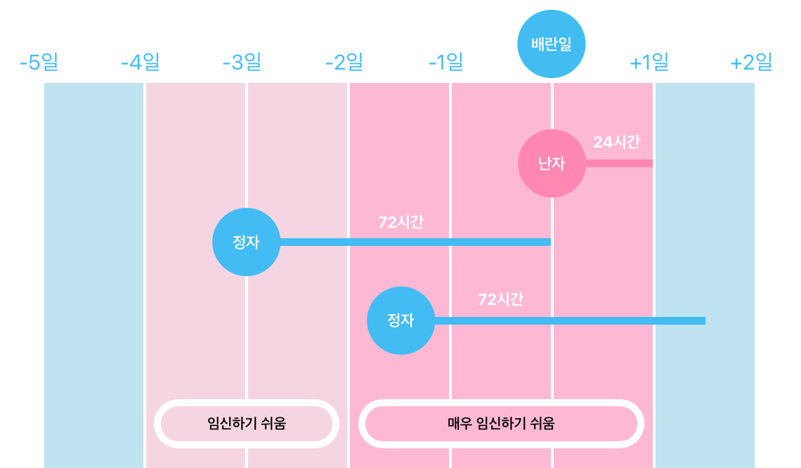 임신하기 쉬운 타이밍은 배란 예정일 4일 전~1일 전, 횟수는 2~4회 정도라고 합니다.
