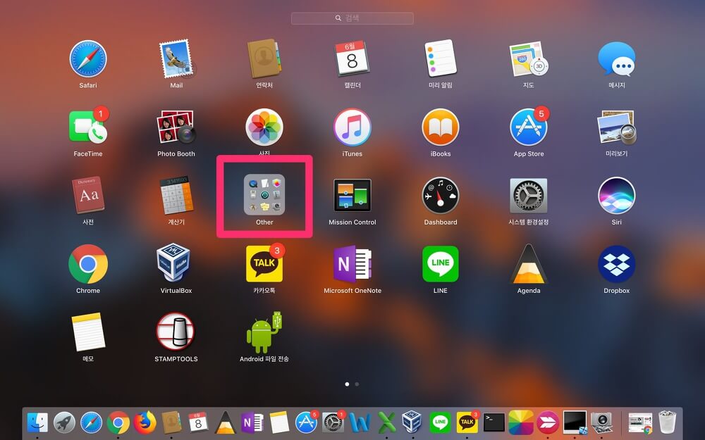 앱을 런치시켜서 기본으로 포함되어 있는 OTHER 폴더를 선택합니다.
