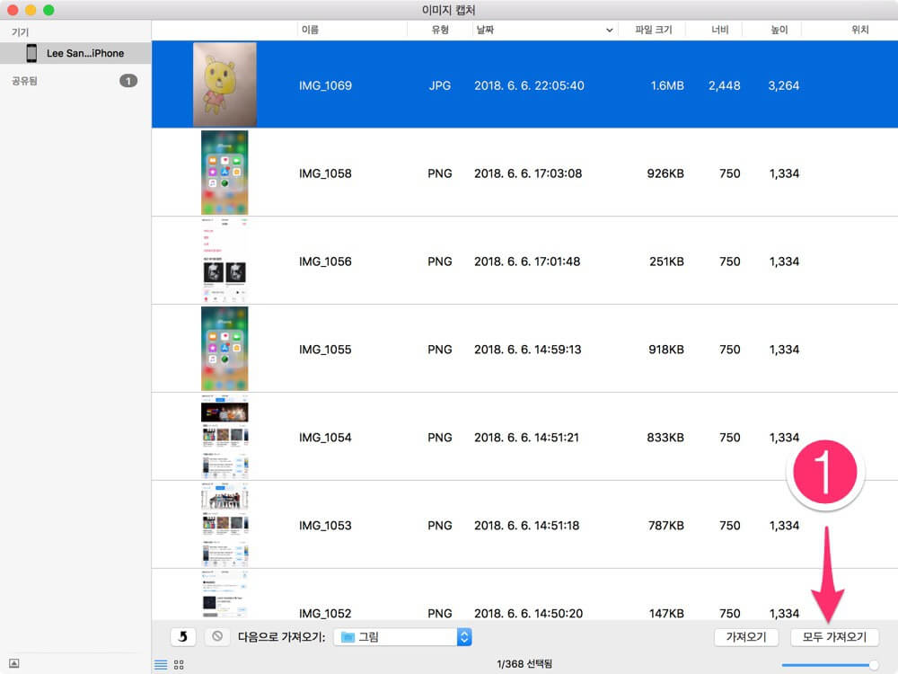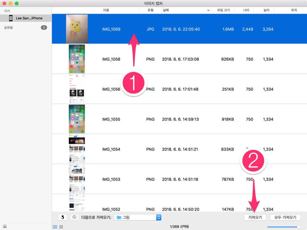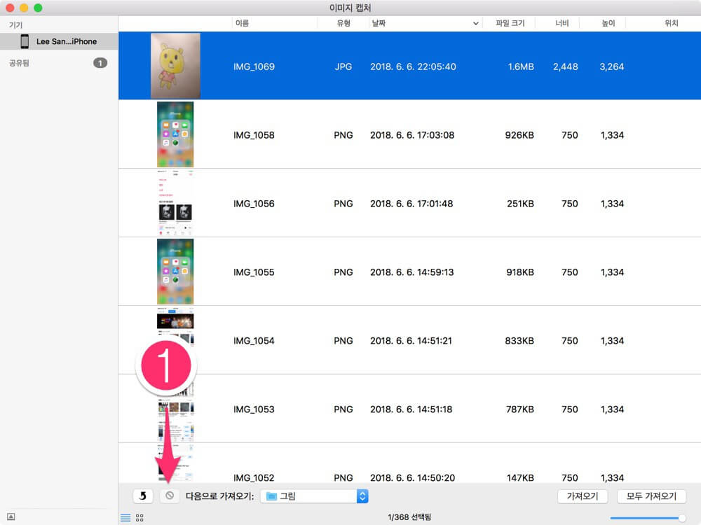 1-1. 아이폰 사진을 맥으로 옮기기: 이미지 캡쳐앱을 사용