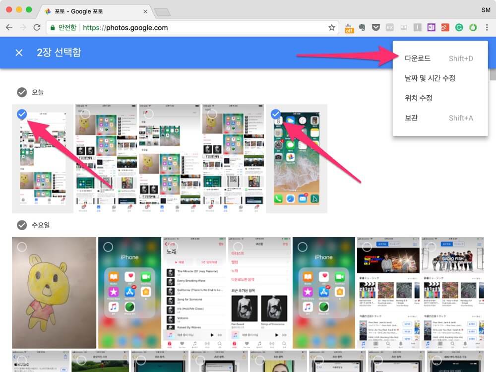 1-1-1. 아이폰 안의 사진 일부만 옮기기