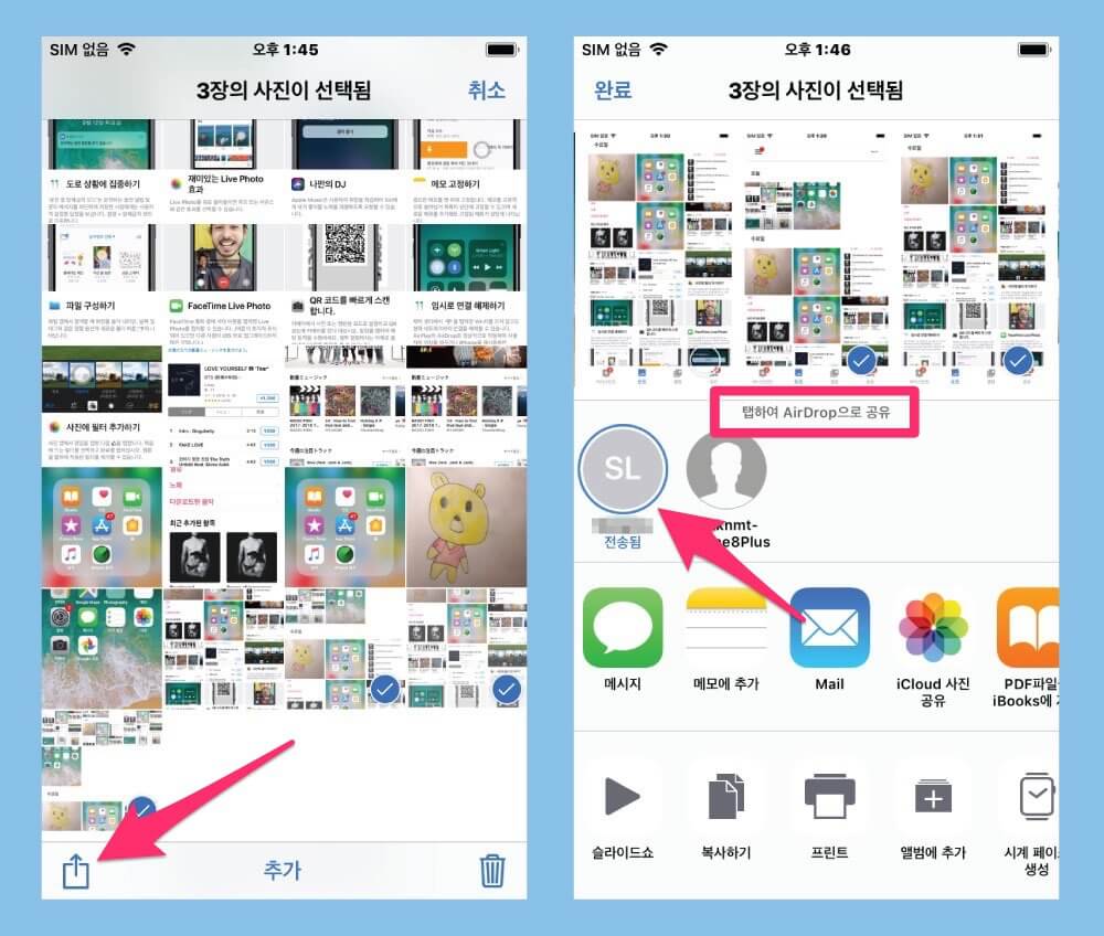 이 AirDrop기능을 이용하면 빠르고 간편하게 사진을 옮길 수 있습니다.