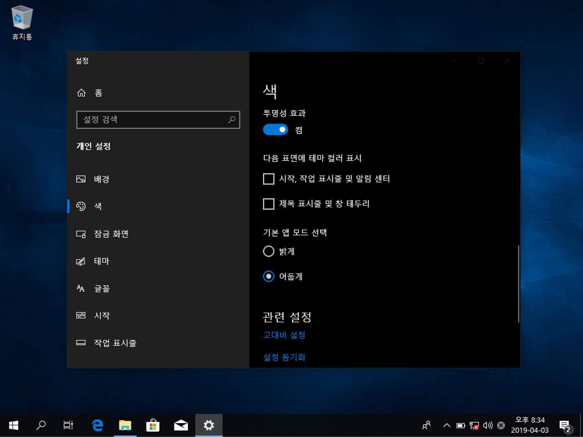 색을 선택하고 밑으로 화면을 내리면 기본 앱 모드를 선택이라는 항목이 나오는데요.