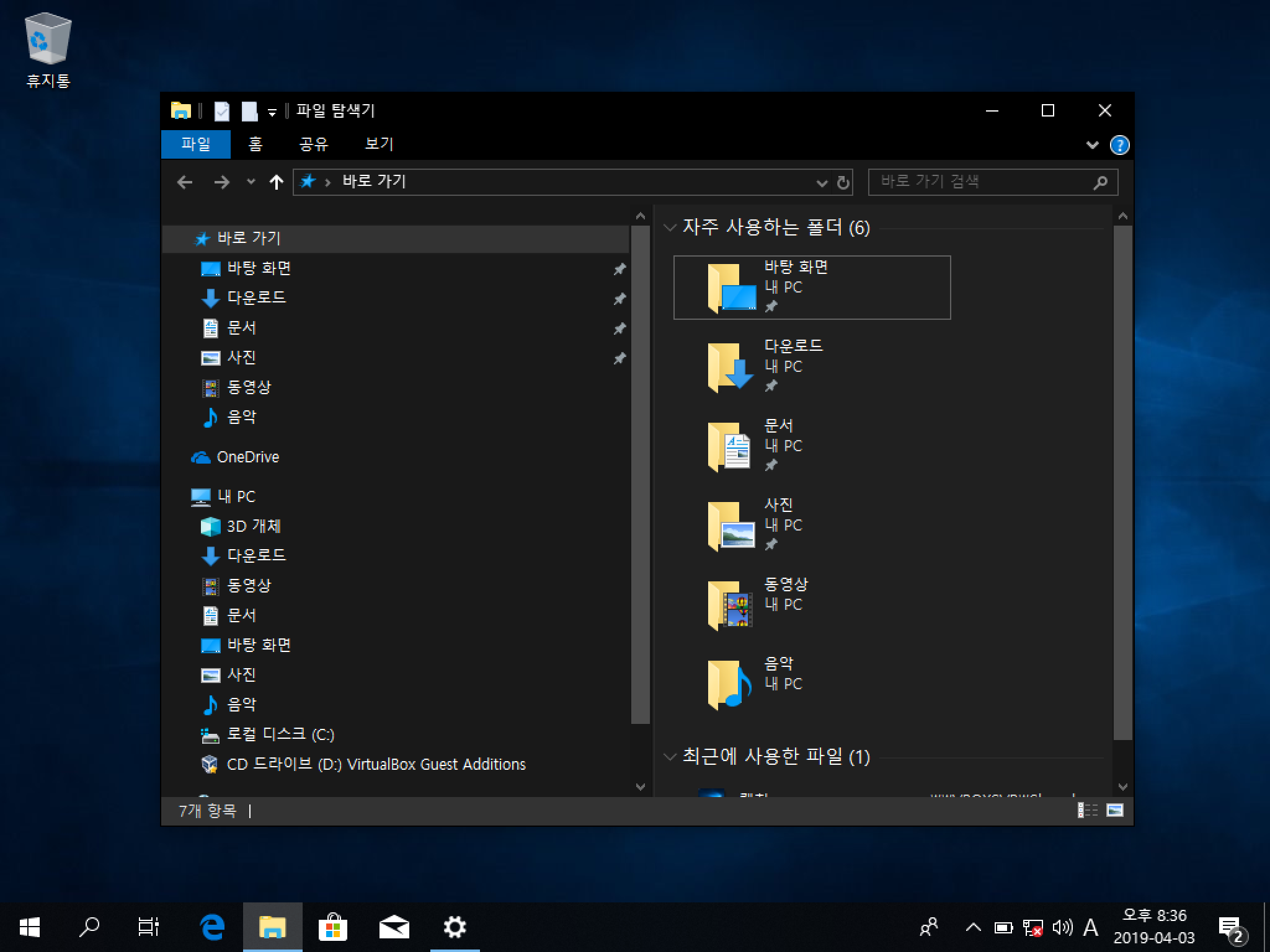 아래는 검은색으로 변한 탐색기의 색상입니다. 이런식으로 어플리케이션(프로그램)의 기본 색상이 다크모드로 변경됩니다. 착하고 가라앉는 분위기가 나는 것 같습니다.