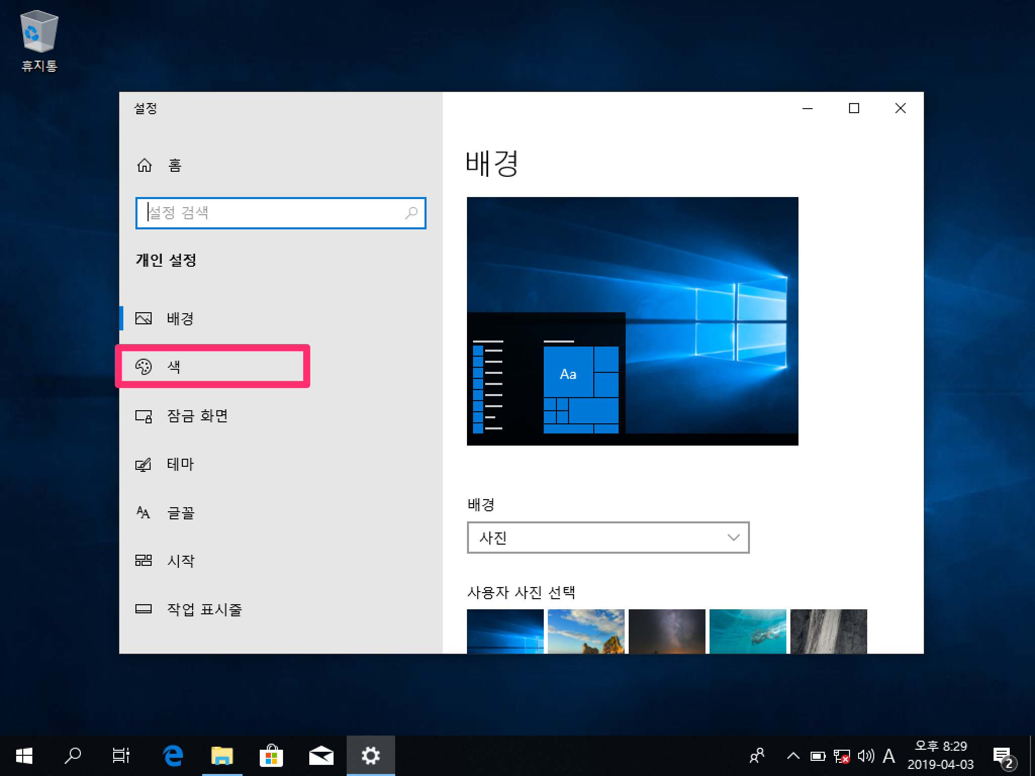그리고 개인설정에 들어가면 색을 선택합니다.