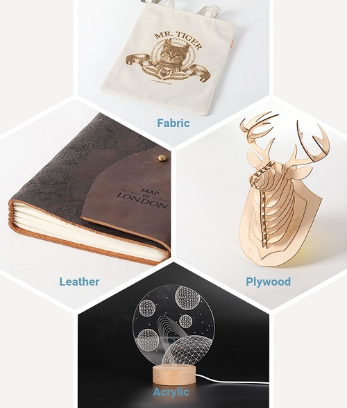 레이저 모듈은 카메라를 내장하고 있어며, 디자인의 프리뷰가 가능합니다. 클래스4 레이저의 출력은 1.6W이고 파장은 450nm로 목재, 천, 가죽, 플라스틱 외에도 쿠키와 코코넛에도 마킹을 할 수 있다고 하네요.