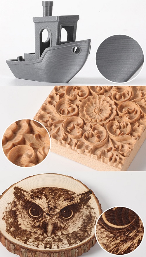 CNC 모듈의 스핀들 회전 수는 6000 ~ 1 만 2000RPM. 비트 직경은 0.5 ~ 6.35mm에 대응합니다. 나무, PCB, 아크릴, 탄소 섬유 시트 등에 조각을 실시 할 수있습니다.