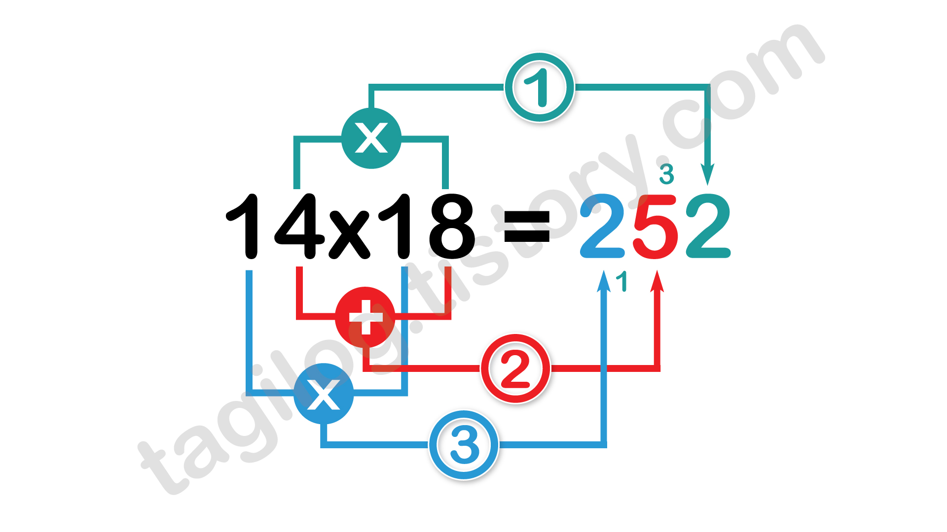 마지막으로 좌항의 둘째 자리의 숫자 끼리 곱해서, 우항의 백의 자리에 넣어주면 됩니다.
