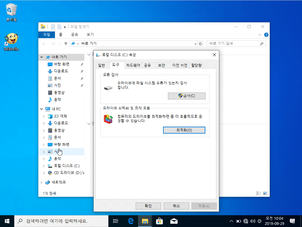 조각모음과 함께 디스크 정리도 정기적으로 실시해 주도록 합니다.