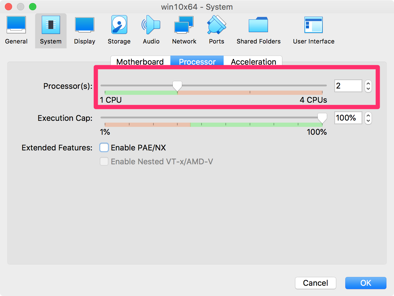 처음 설정할 때 가상머신에 할당한 CPU의 수가 적다면 그 수를 늘려 주도록 합니다. 하지만, 그만큼 리소스를 이용하는 것이니, 버추얼박스 사용할 때는 주의하도록 합니다.
