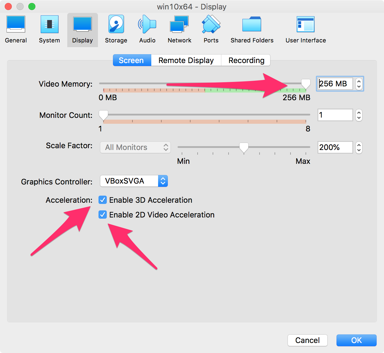 시스템의 가속을 설정했다면, 다음은 비디오 디스플레이의 가속도 선택해 줍니다.