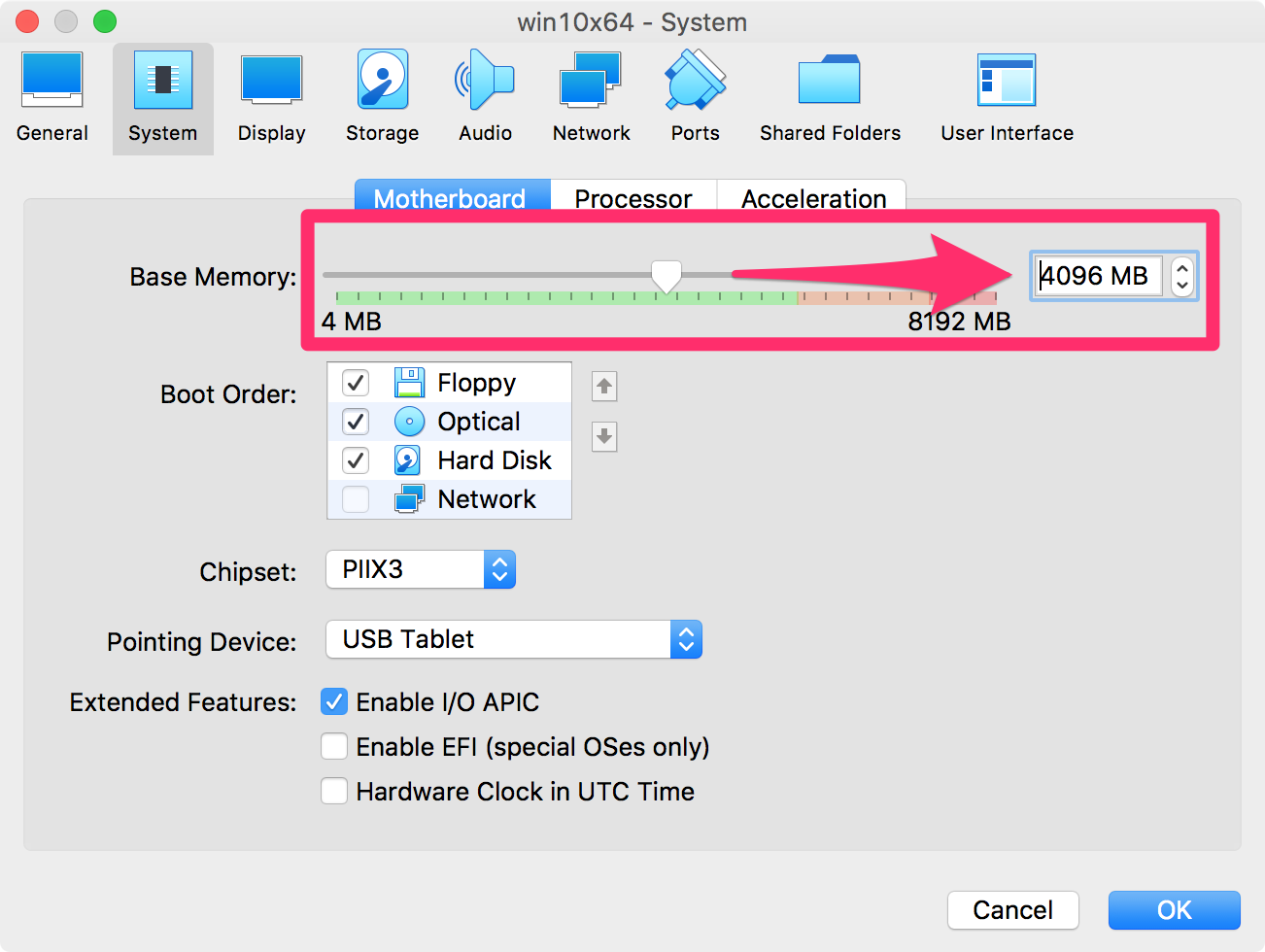 메모리 역시 처음 설정할 때 가상머신에 할당한 크기가 적다면 그 크기를 늘려 주도록 합니다. 시스템의 메모리 뿐만 아니라, 비디오 메모리역시 늘려 줍니다.