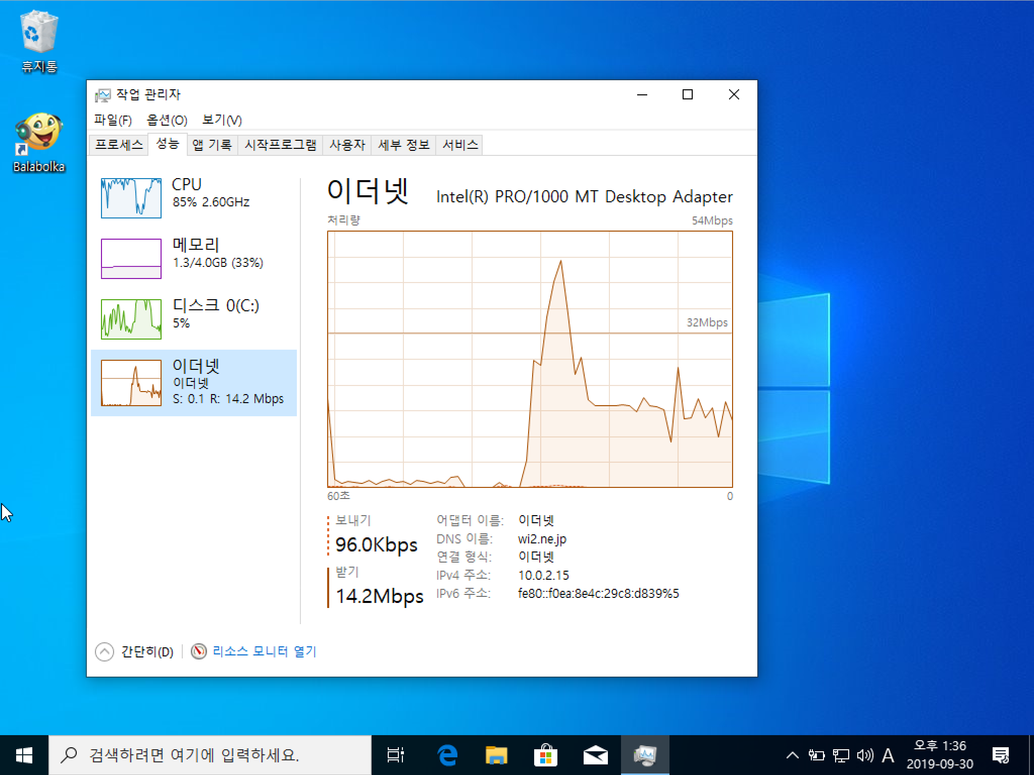 2-2-1. 윈도우 작업 관리자에서 통신 속도 확인