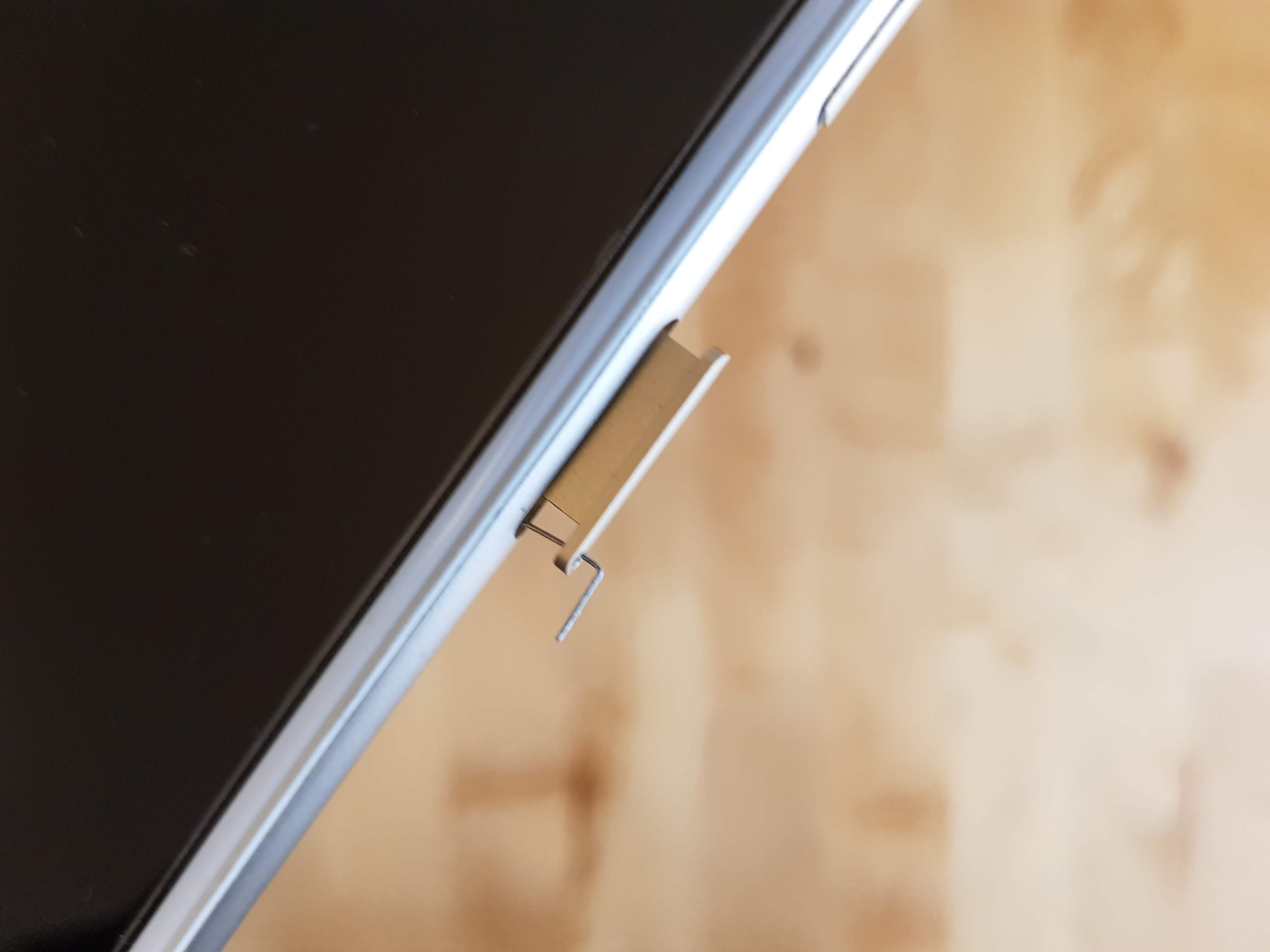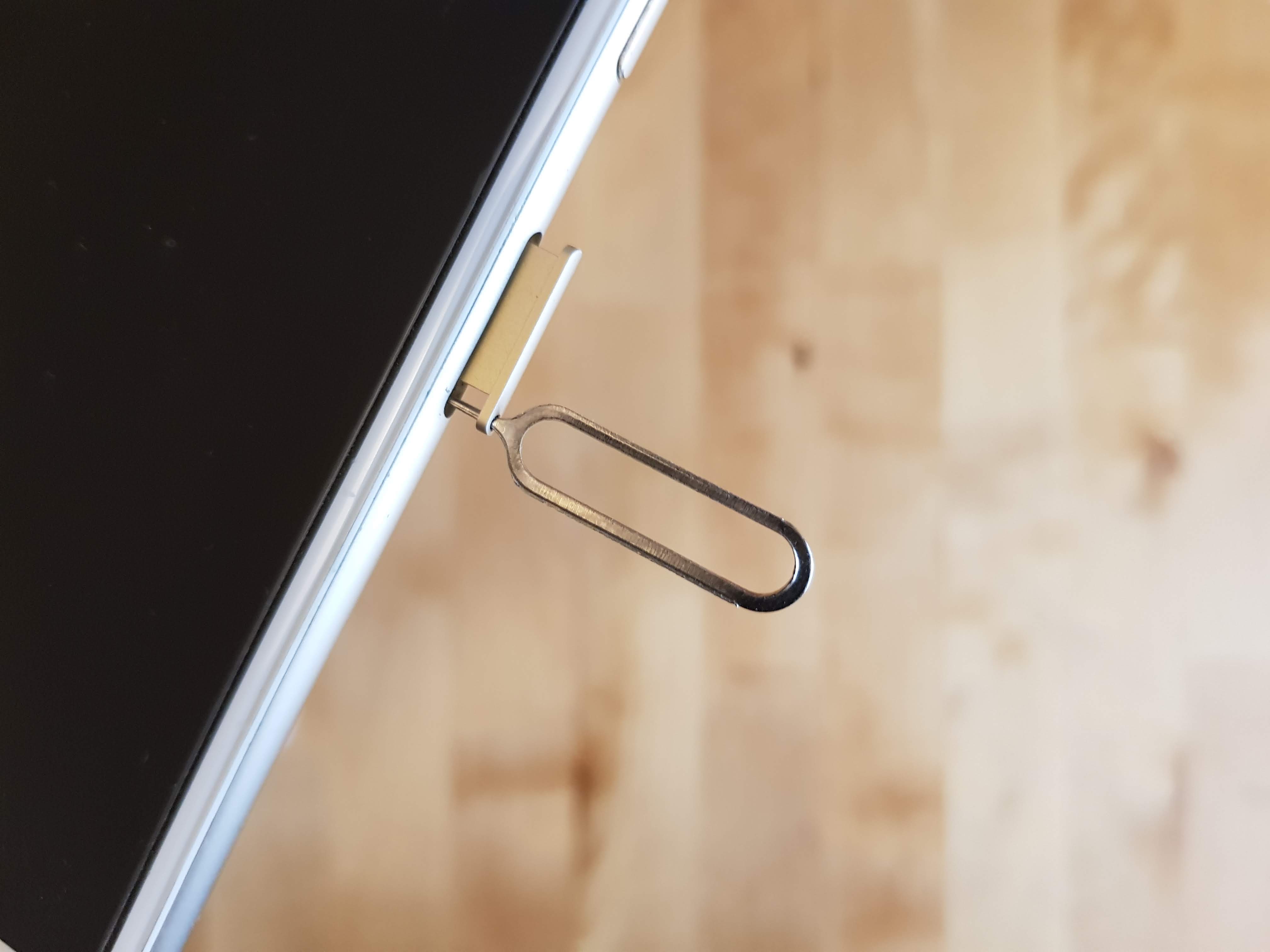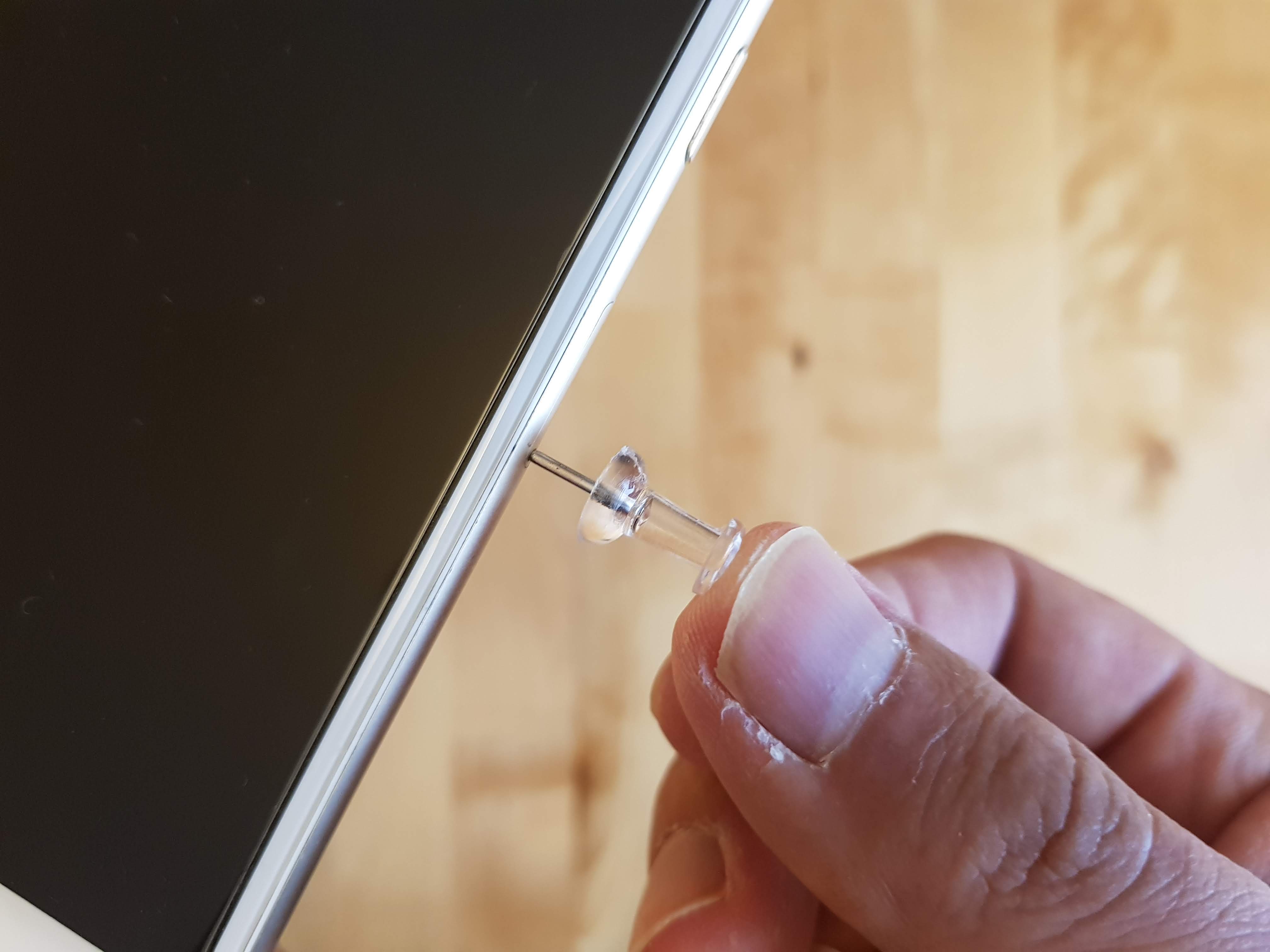 유심 핀을 사용하여 유심칩을 교환하는하는 방법으로 최근에 가장 일반적인 방법이라고 할 수 있겠습니다. 사진과 같이 유심핀을 구멍에 꼽아서 트레이를 꺼내고 유심칩바꾸기를 해 줍니다.