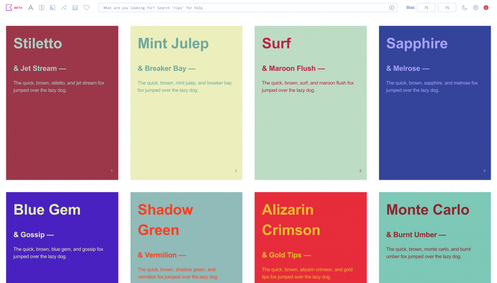 Khroma은 원하는 색상을 직접 선택하여 인공 지능이 당신에게 맞는 색상을 제안 해주는 색상 생성 서비스입니다.