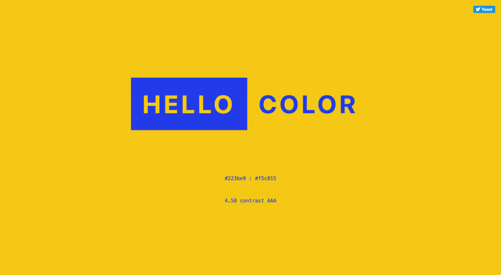 HELLO COLOR 화면을 클릭 할 때마다 2 색의 배색 패턴 견본이 표시되는 서비스입니다. 화면에 크게 표시되므로 이미지가 직관적으로 알기 쉽네요. 차분한 조합에서 보통 세련된 조합까지 다양한 2 색의 배색 패턴에서 찾을 수 있습니다.
