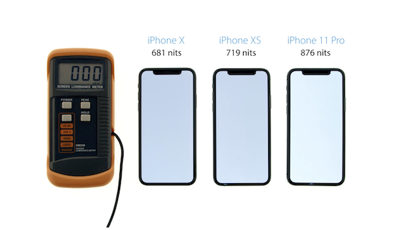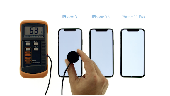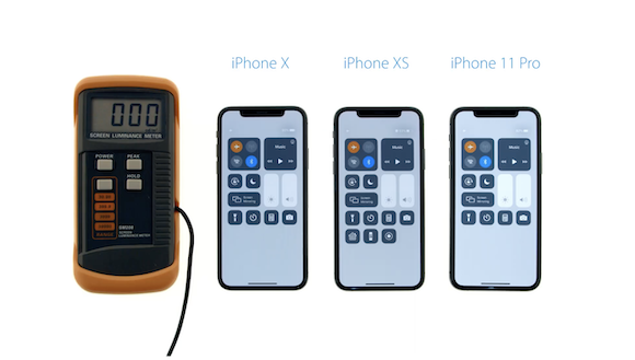 관련하여 iClarified 는 유기 EL (OLED) 디스플레이를 탑재한 아이폰 X, 아이폰 XS, 아이폰11 Pro의 3 모델 디스플레이의 밝기를 비교한 동영상을 공개했습니다.