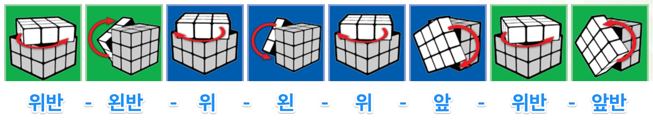 | 앞 | 앞면을 시계방향으로 돌린다 | 앞반 | 앞면을 시계 반대 방향으로 돌린다 |