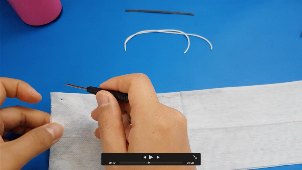 양 끝에 구멍을 내고 고무줄을 묶으면 끝이 납니다.