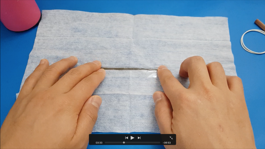 양 끝에 구멍을 내고 고무줄을 묶으면 끝이 납니다.
