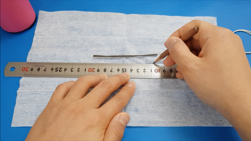 가운데 철심을 고정할 부분을 연필로 표시해 줍니다.