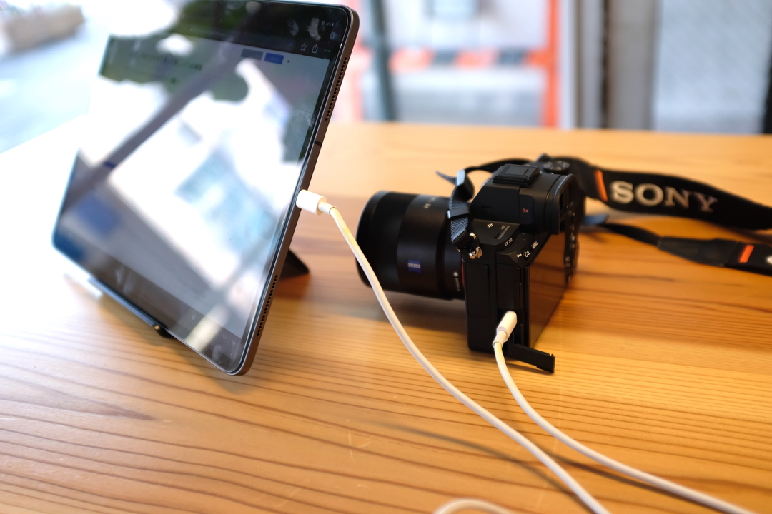 촬영 한 사진은 Type-C 케이블로 α7 III에서 iPad로 전송할 수 있습니다. 케이블을 연결하여 사진 응용 프로그램을 열면, "로드" 라는 버튼이 나타납니다. 여기에서 전송하고자하는 사진을 선택하고 지정된 파일에 저장할 수 있습니다. 찍은 사진을 큰 화면에서 확인하고 싶은 사람, SD 카드의 데이터를 다른 곳으로 옮기고 싶은 사람에게 추천합니다.