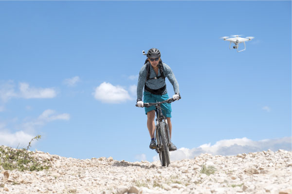 피사체를 쫓는 동안 비행하는 기능이 "자동 추적"입니다. 일정한 거리를 유지하면서 설정 한 피사체를 촬영할 수 있습니다. 여행하고있는 자전거 나 달리고있는 사람을 뒤로 상공에서 추적 해 촬영하는 등 역동적 인 영상 촬영이 가능합니다.