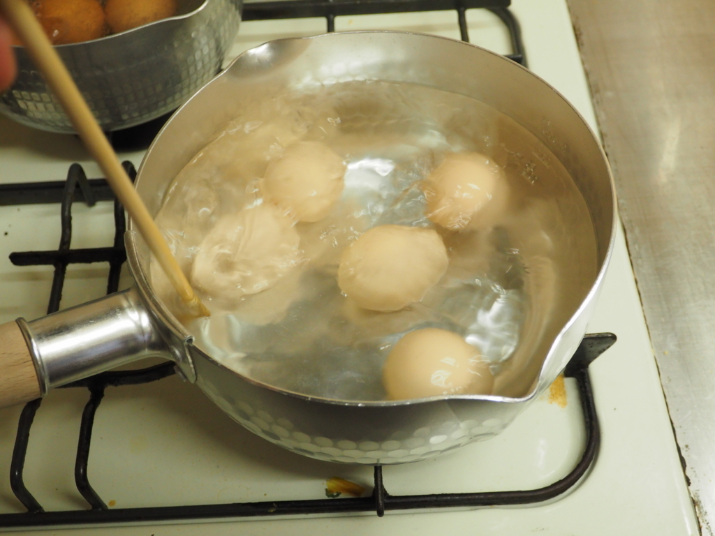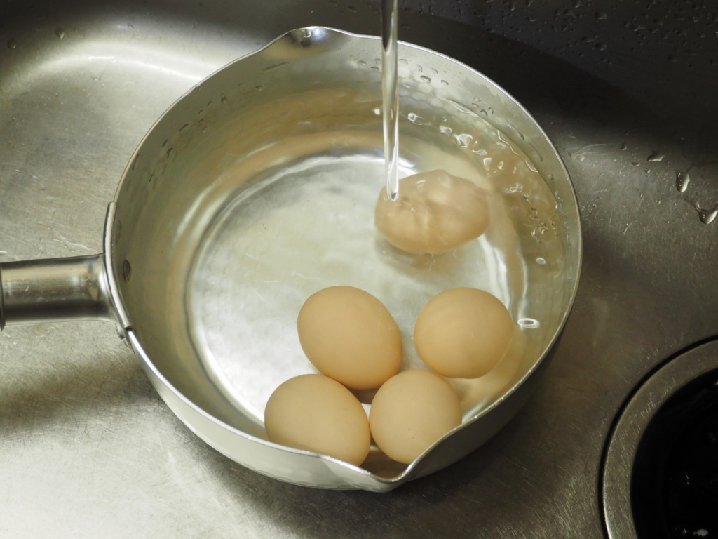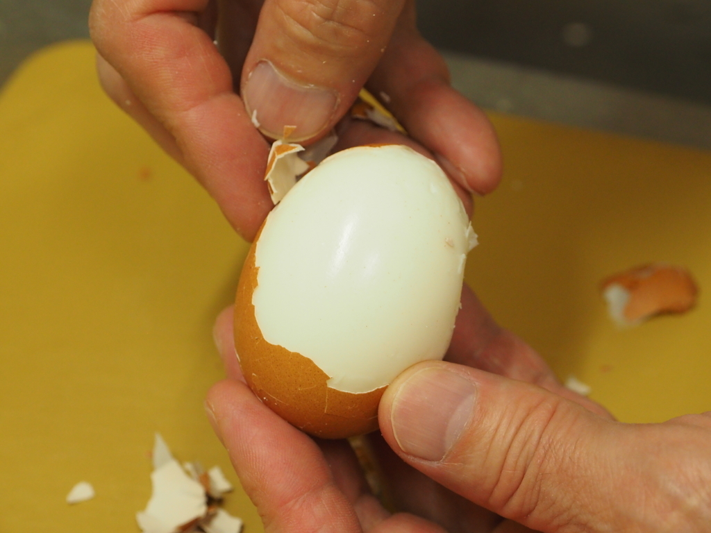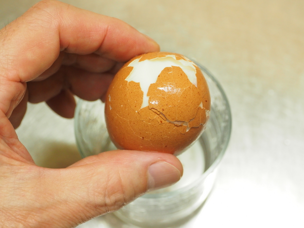 ※ 물과 함께 흔드는 것이 포인트. 물이 쿠션이되어 껍질이 깨져도 삶은 달걀은 깨지지 않습니다.