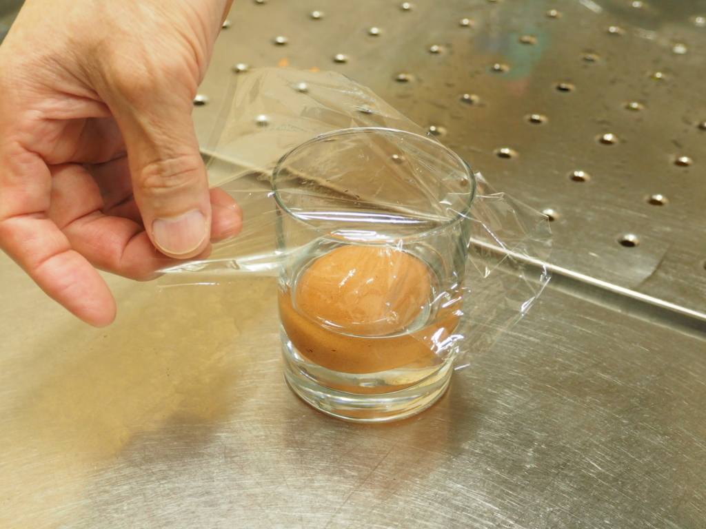 3. 손으로 컵의 입구를 막고 격렬히 흔들어 줍니다. 그러면 삶은 계란에 금이 가면서 껍질 안쪽에 물이 스며들어 껍질이 벗기기 쉬워집니다.