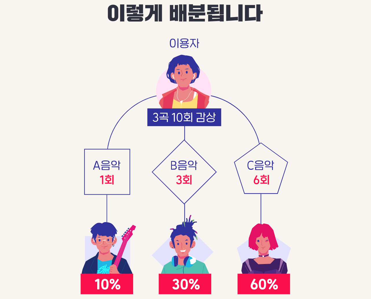 필자도 스트리밍 서비스에 대한 포스팅을 몇 번 올렸었던이 있었지만, 현재 국내 음원 스트리밍 서비스들은 비례배분제라는 방식을 취하고 있습니다.