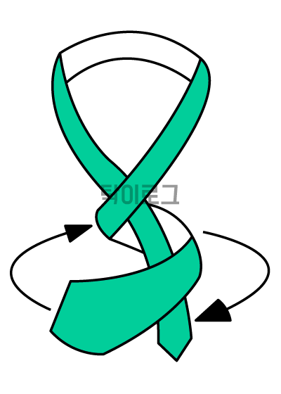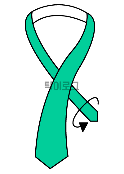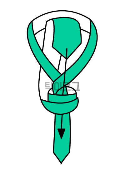 ① 넥타이를 목에 걸고 단검을 180도 비튼다. |