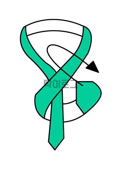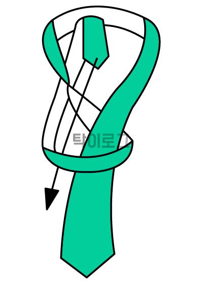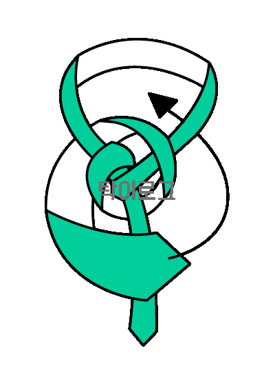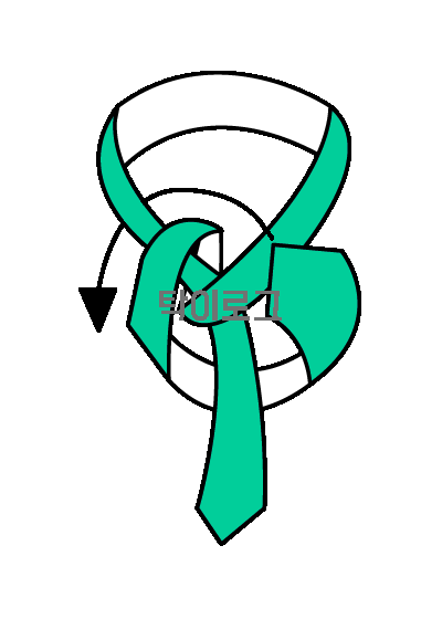 ④ 대검 끝을 위로 가지고 가서 칼라의 뒷면에서 빠져 나가게하는 것을 통해 옆에있는 루프에 통과시킨다. |