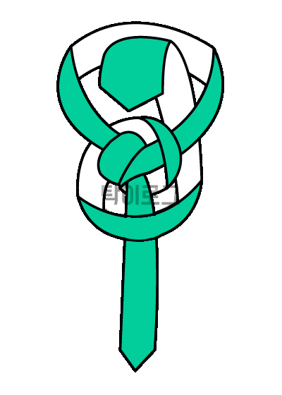 ④ 매듭을 집게 손가락으로 억제하면서 대검 끝을 칼라로 빠져 나가게하는 것을 통해. 집게 손가락을 떼고 대검 끝을 아래의 매듭 사이에 통과시킨다. |