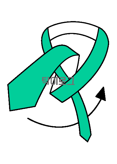 ① 넥타이를 목에 걸고 단검을 180도 비튼다. |