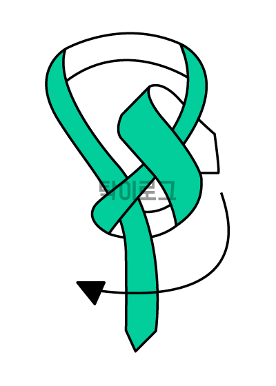 ④ 대검 끝을 위로 가지고 가서 칼라의 뒷면에서 빠져 나가게하는 것을 통해 옆에있는 루프에 통과시킨다. |